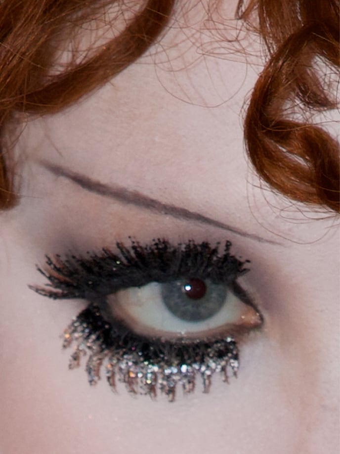 False lashes layered on Chappell’s upper and lower lids create a super-stacked look for head-turning drama.